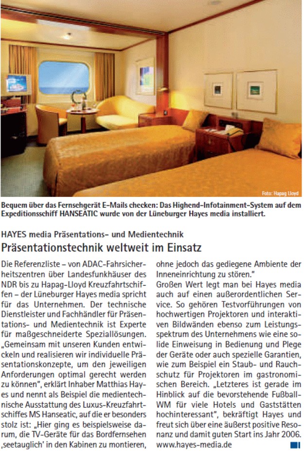 • Hapag Lloyd Kreuzfahrten (MS Europa, Ms Bremen, MS Hanseatic, MS Columbus)